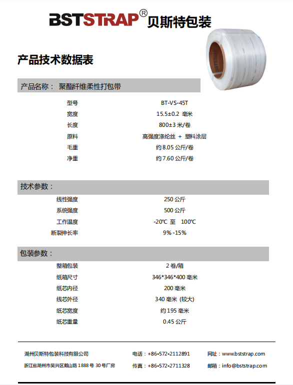 15.5mm 聚酯纖維打包帶 BT-VS-45T